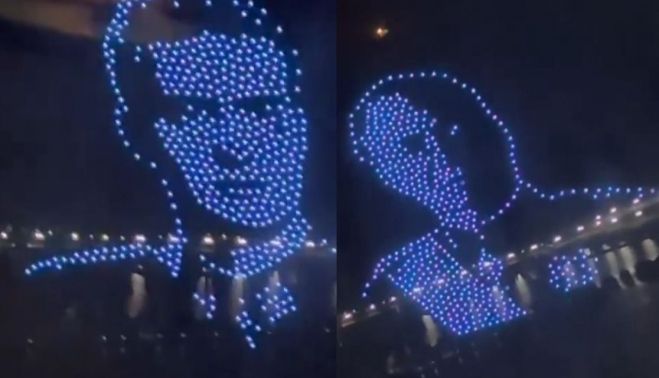 Este espectáculo es de un tipo que aún apenas ha llegado a España pero que es habitual en países como China. Consiste en la presencia de centenares de drones surcando el cielo y realizando dibujos, escribiendo mensajes.