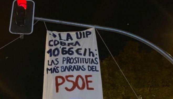 “La UIP (Unidad de Intervención Policial) cobra 10,6 euros la hora: las prostitutas más baratas del PSOE", se podía leer en el mensaje que atacaba duramente contra la Policía y el Partido Socialista.