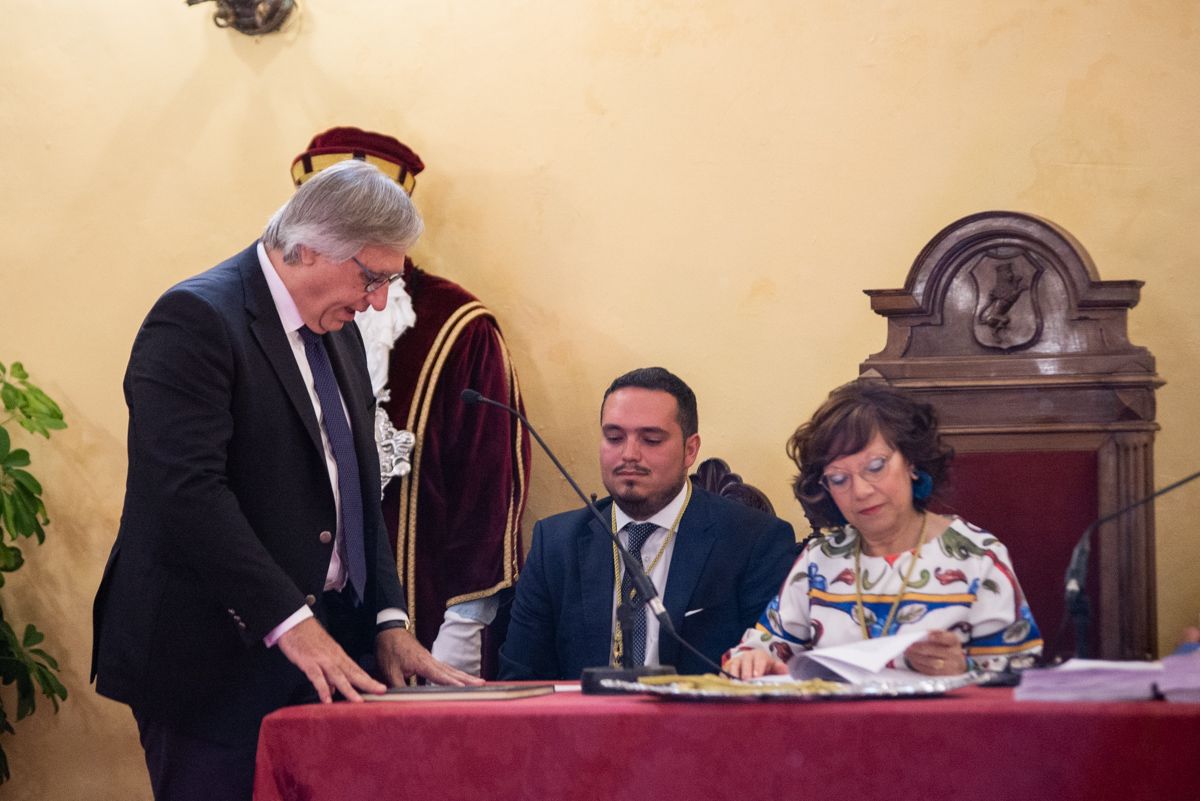 Carlos Pérez, senador y líder de Cs en Jerez, recibe su medalla como concejal.