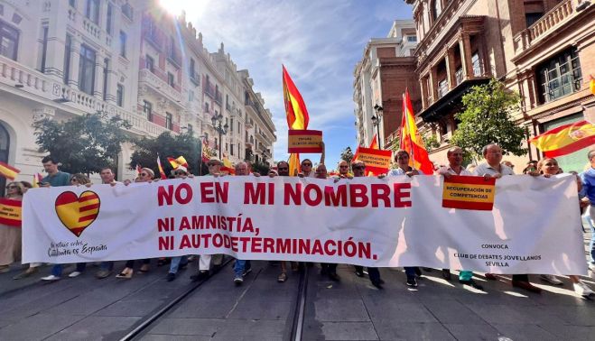 Desde la Puerta de Jerez a la Plaza Nueva y con el mismo lema que en Cataluña, los manifestantes han coreado lemas en defensa de la "unidad de España". El fundador del Club de debate Jovellanos, Juan María del Pino, ha llamado la atención sobre el hecho de que "la sociedad civil ha llenado las calles en defensa de la Constitución y en contra de la amnistía".