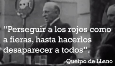 En el vídeo también se incluyo una parte de uno de los discursos en el que el genocida señalaba. "Nuestros valientes legionarios han enseñado a los cobardes de los rojos lo que significa ser hombre. Y, de paso, también a las mujeres. Ahora sabrán lo que son los hombres de verdad. No se van a librar por mucho que pataleen o forcejeen".