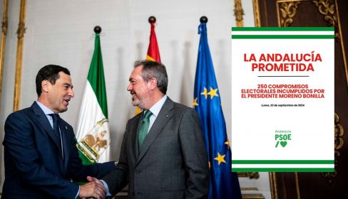 Por su parte, el PSOE contraatacaba en esa reunión con Sánchez con un documento de 250 incumplimientos del PP que llevaba en sus programas electorales desde 2018, cuando llegó Juanma Moreno a la Junta. Denominado con ironía también 'La Andalucía Prometida', el documento comienza tratando de desgranar que la situación económica de Andalucía con respecto a la financiación no es como la pinta la Junta: "En 2024 Andalucía recibe el máximo histórico del sistema de financiación autonómica con 27.910 millones de euros y volverá a ser récord en 2025, al subir las entregas a cuenta hasta 28.540 millones".