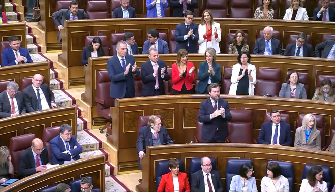 Sin embargo, al terminar, no ha recibido el aplauso de Ramón Tamames. El resto de diputados de Vox sí lo recibía en pie desde sus escaños. El candidato, por su parte, aguardaba en su asiento con el rostro serio después de haber escuchado las razones que justificaba su llegada al Congreso.