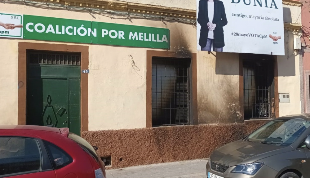 Fuego en la sede del principal partido del Gobierno melillense, Coalición por Melilla (CPM). "No es un accidente, se trata de un acto totalmente repulsivo y deleznable", según ha manifestado la propia formación este martes, un día después de pedir la paralización de las elecciones.