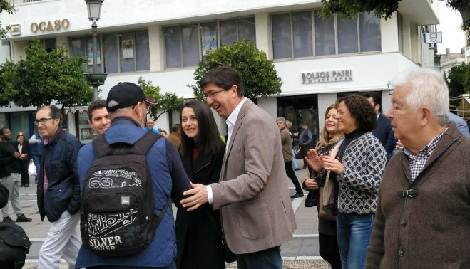 Juan Marín junto a Inés Arrimadas. Foto: Sebastián Chilla.Los líderes de Ciudadanos han estado acompañados de Sergio Romero y María del Carmen Martínez Granados, candidatos al Parlamento de Andalucía por la provincia de Cádiz, del concejal y portavoz de la formación política en el pleno municipal de ciudad, Carlos Pérez, y de numerosos simpatizantes y militantes.