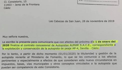 La secretaria general del PSOE de Cádiz y presidenta de la Diputación, Irene García, celebra que la concesionaria Aumar haya enviado a los ayuntamientos de Cádiz y Sevilla una misiva en la que anuncia el final del contrato correspondiente a la explotación y conservación de la autopista a Sevilla y resalta que es "un compromiso cumplido más del PSOE".