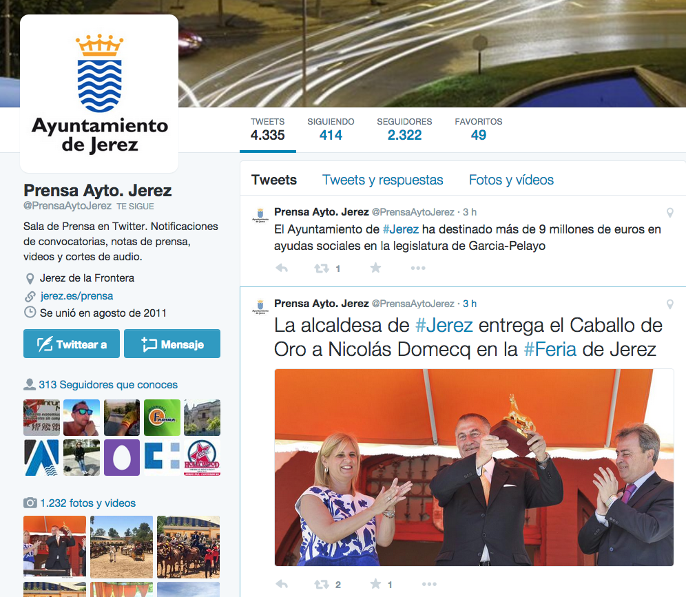 El candidato a la Alcaldía por esta agrupación de electores, Santiago Sánchez, ha manifestado que "en Ganemos Jerez estamos de enhorabuena porque la JEZ nos ha dado la razón respecto de la denuncia que hicimos del uso fraudulento de la cuenta de Twitter de prensa del Ayuntamiento de Jerez, un recurso público que nos pertenece a todos los ciudadanos y que se estaba utilizando para el beneficio propio y el beneficio particular de María José García-Pelayo". "Una vez más -ha dicho- el PP pone de manifiesto su falta de ética, en este caso en la campaña electoral. Muchas gracias a todos los que nos han hecho llegar este uso indebido de los recursos públicos pese a que el señor Saldaña decía este martes pasado que esta denuncia era de gente que estaba aburrida. Se demuestra que no estábamos aburridos sino que tenemos una ética que está a años luz de la que defienden él y su partido".