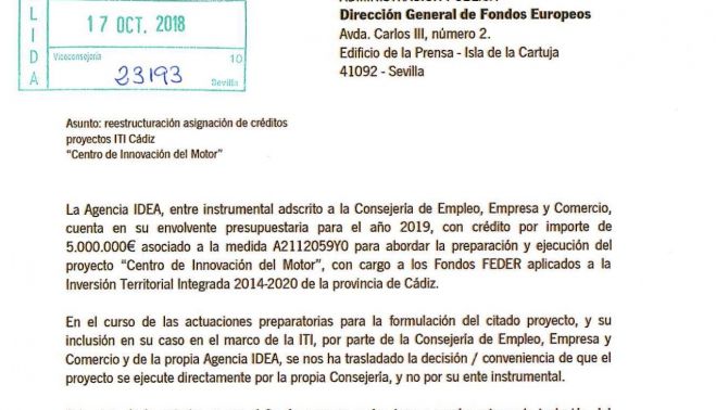 Por ello, ha pedido la dimisión de Mestre, así como "que deje de tomar el pelo a los jerezanos, que no le intente quitar cinco millones de euros de la ITI a Jerez para llevárselos a otra ciudad, a otro circuito, y que reconozca abiertamente que no quiere ejecutar el proyecto del Centro Tecnológico del Motor". Además, ha instado a la delegada de la Junta en Cádiz a "que enseñe el acta de las reuniones, los correos donde se reconozca por los técnicos de la Junta que la ejecución del Centro es inviable, según ha defendido, así como el acta de la Comisión de Participación de la ITI donde se haya rechazado el proyecto". "No enseña nada porque no existe tal acta, y porque queda demostrado que el Gobierno de Susana Díaz no rechazó el proyecto, todo es una mentira", ha concluido.