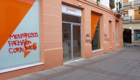 Esta pasada madrugada la sede provincial de Ciudadanos, situada en la calle Rosario de Jerez, ha sufrido varias pintadas en las que se les llama "mentirosos", "fachas" y "corruptos".
