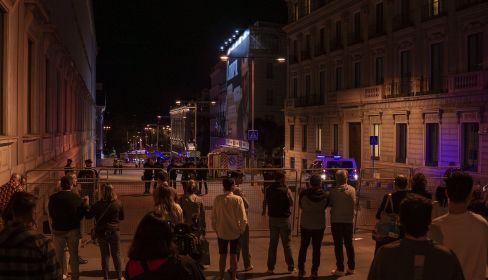 Los primeros efectivos policiales llegaron sobre las 22.24 horas, según la versión de Hazte Oír, y minutos después acudieron al lugar dos camiones de bomberos. La lona fue retirada varias horas más tarde, en una operación que se desarrolló durante la noche bajo supervisión policial.