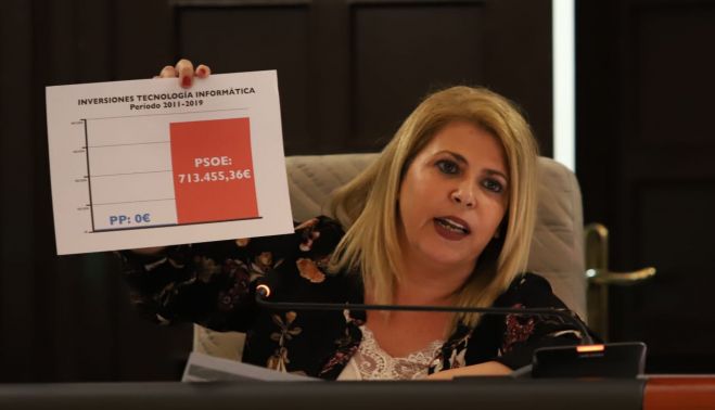 Por último, la alcaldesa ha mostrado un gráfico donde se observa que en el período 2011-2019 la inversión de sus dos gobiernos en tecnología informática “ha sido de 713.455,36 euros, frente a cero euros de los populares”.