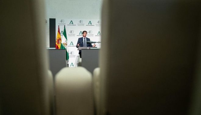 A esto, ya públicamente y no a través de "fuentes oficiales" a medios como El Confidencial y El País, el vicepresidente de la Junta y consejero de Turismo, Regeneración, Justicia y Administración Local, Juan Marín, ha defendido este lunes que "no se ha cambiado nada" en el escudo de Andalucía que se veía este pasado domingo en el atril desde el que el presidente del Gobierno autonómico ofreció una rueda de prensa, respecto al que ya había en los "últimos cuatro años" del Gobierno socialista de Susana Díaz.