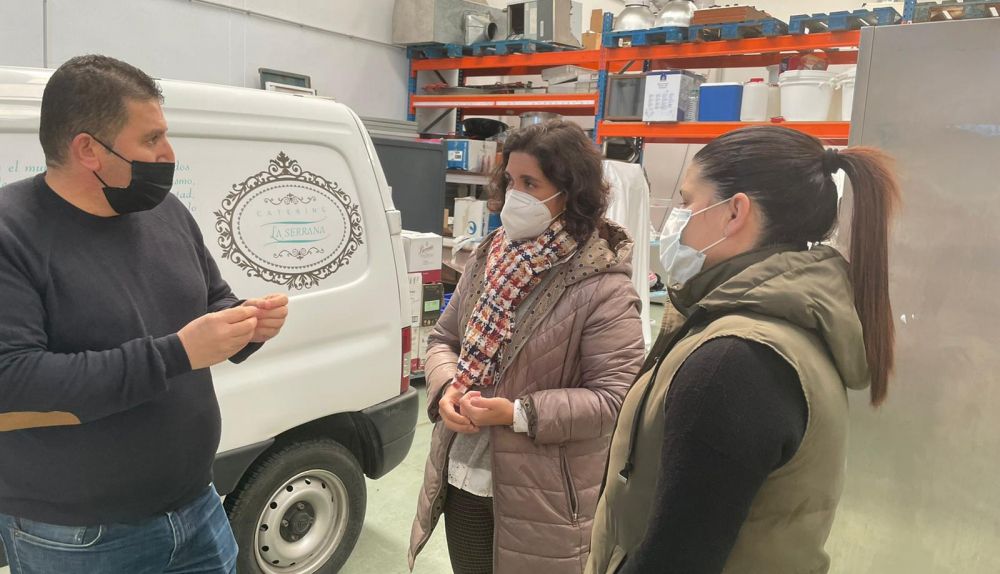 La portavoz de Empleo del Grupo Socialista y parlamentaria gaditana, Noelia Ruiz, junto al portavoz municipal del PSOE, José Antonio Narváez, ha constatado hoy durante la visita a la empresa de catering La Serrana, en Alcalá del Valle, la situación límite que atraviesa el sector hostelero a causa de una crisis sanitaria que, al prolongarse durante varios meses, está dejando en números rojos la contabilidad de los negocios. Por eso, considera que las ayudas a las Pymes aprobadas hoy por el Consejo de Gobierno por valor de 1.000 euros son totalmente insuficientes para hacer frente a la difícil coyuntura de empresas donde la caída de ingresos ronda el 90 por ciento.