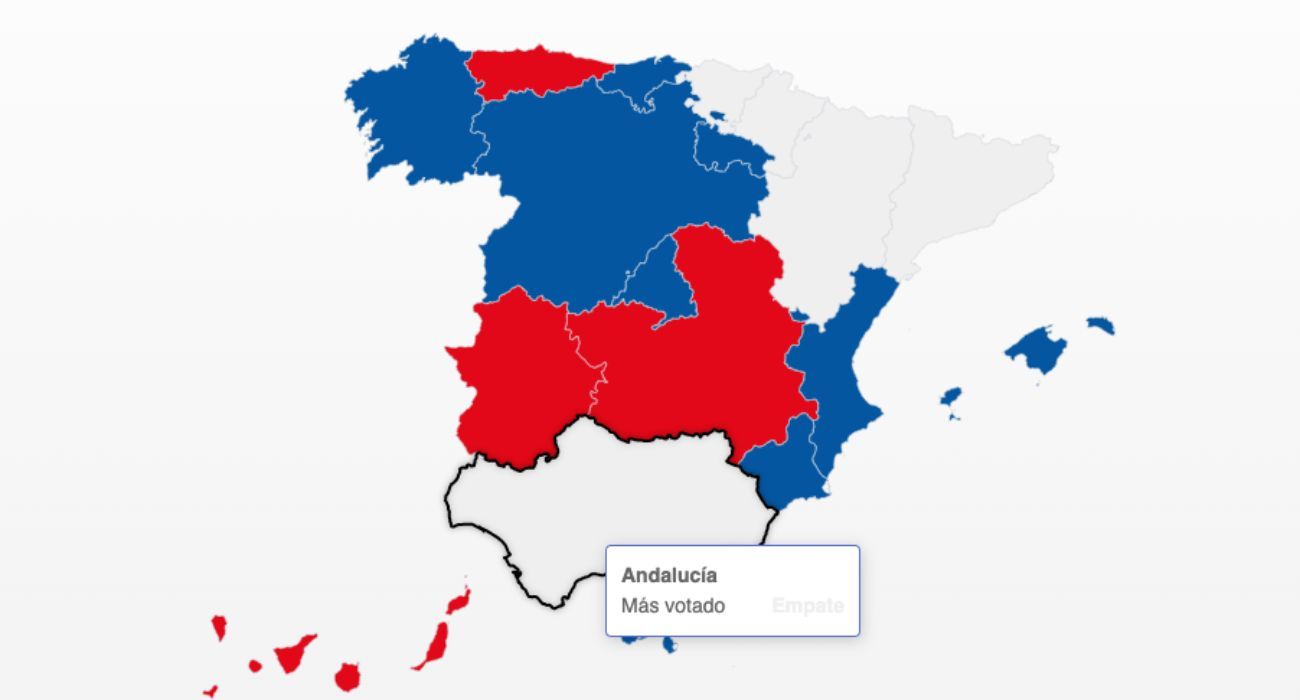 En el cómputo por provincias, también considera que ha habido un empate en Granada, Cádiz y Huelva, provincias donde el PP también sacó un mayor porcentaje de votos que el PSOE.