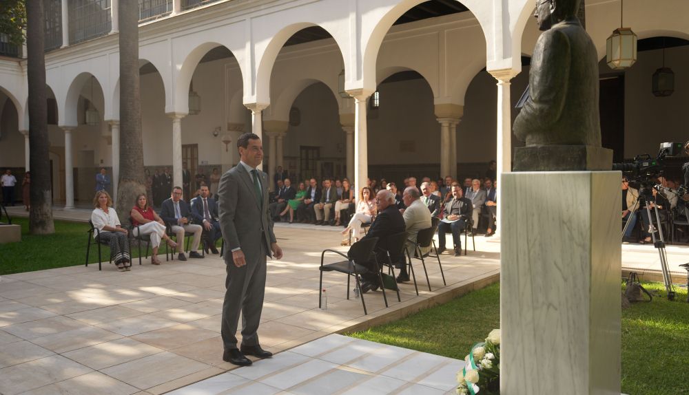 Las intervenciones se han convertido en una sesión parlamentaria improvisada, con mensajes que llevaban muchas lecturas. Desde la petición de Adelante Andalucía para apoyar a Palestina en honor a los valores de Blas Infante, hasta la reivindicación de la figura de Rafael Escuredo por parte de Juan Espadas. Acto seguido, el portavoz del PP, Toni Martín, ha mencionado a Manuel Clavero Arévalo y el busto que el Parlamento de Andalucía inauguró hace tan solo unas semanas en ese mismo patio. Una batalla por los símbolos que no es nueva y que, seguramente, se prolongará mucho más tiempo.