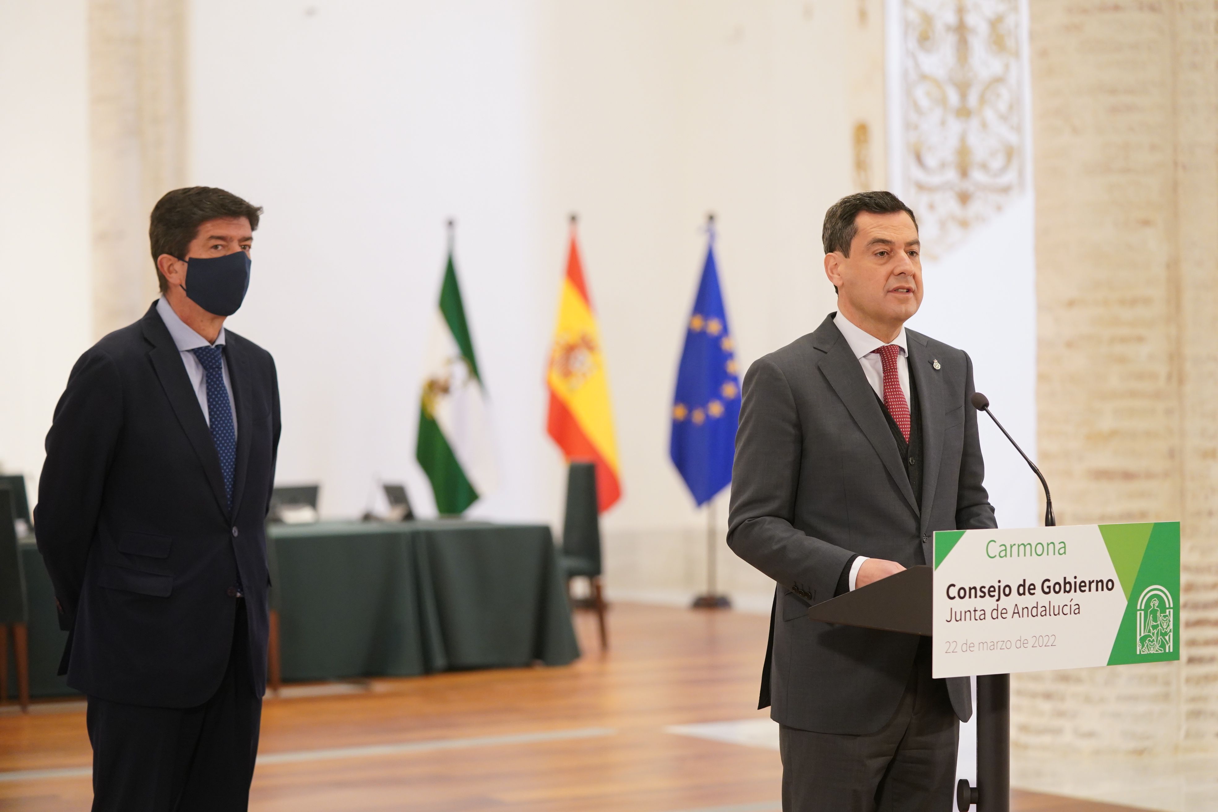 El vicepresidente de la Junta, Juan Marín, no se ha puesto tan bético, pero sí ha afirmado que su compañero Javier Imbroda, consejero de Deportes, ha convertido La Cartuja en "la verdadera joya de la corona del fútbol nacional e internacional" con 20 millones de euros de inversión. Marín ha repasado todos los eventos: cinco finales de Copa, 24 partidos de la selección española de fútbol y la celebración de la Eurocopa.