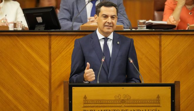Apenas una hora después de que finalizara la huelga sanitaria en los hospitales y centros de salud de Andalucía, Juanma Moreno se disponía a comenzar en el Parlamento de Andalucía un discurso marcado en el calendario. Posiblemente el más importante de lo que va de año. El presidente de la Junta ha cumplido su compromiso de celebrar un debate sobre la situación de Andalucía en el mes de junio. Un pleno que, aunque tiene como objetivo la rendición de cuentas, en algunos momentos ha parecido un lamento sobre la falta de recursos de la comunidad debido al actual modelo de financiación.