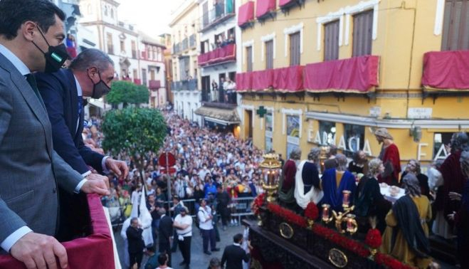 La Semana Santa ha vuelto en Andalucía de la manera en la que estamos acostumbrados y eso incluye fotos de políticos observando el paso de las hermandades desde lugares privilegiados. Durante la jornada, tanto el presidente de la Junta, Juan Manuel Moreno, como el vicepresidente, Juan Marín, presumieron en sus redes de un día radiante y de reencuentro en balcones con vistas envidiables.