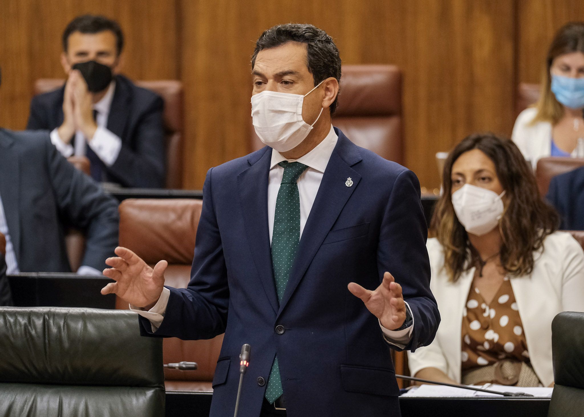 "Queda año y medio, tiempo habrá para coger las bocinas, los micrófonos y los carteles electorales y ya decidirán los andaluces, que lo que ahora quieren es que se pase página a la peor crisis de Andalucía en términos sanitarios y económicos. Esa debe ser la prioridad", sentencia Moreno durante la sesión del control al Gobierno en el pleno del Parlamento de Andalucía tras ser preguntado por la situación regional por el portavoz popular, José Antonio Nieto.