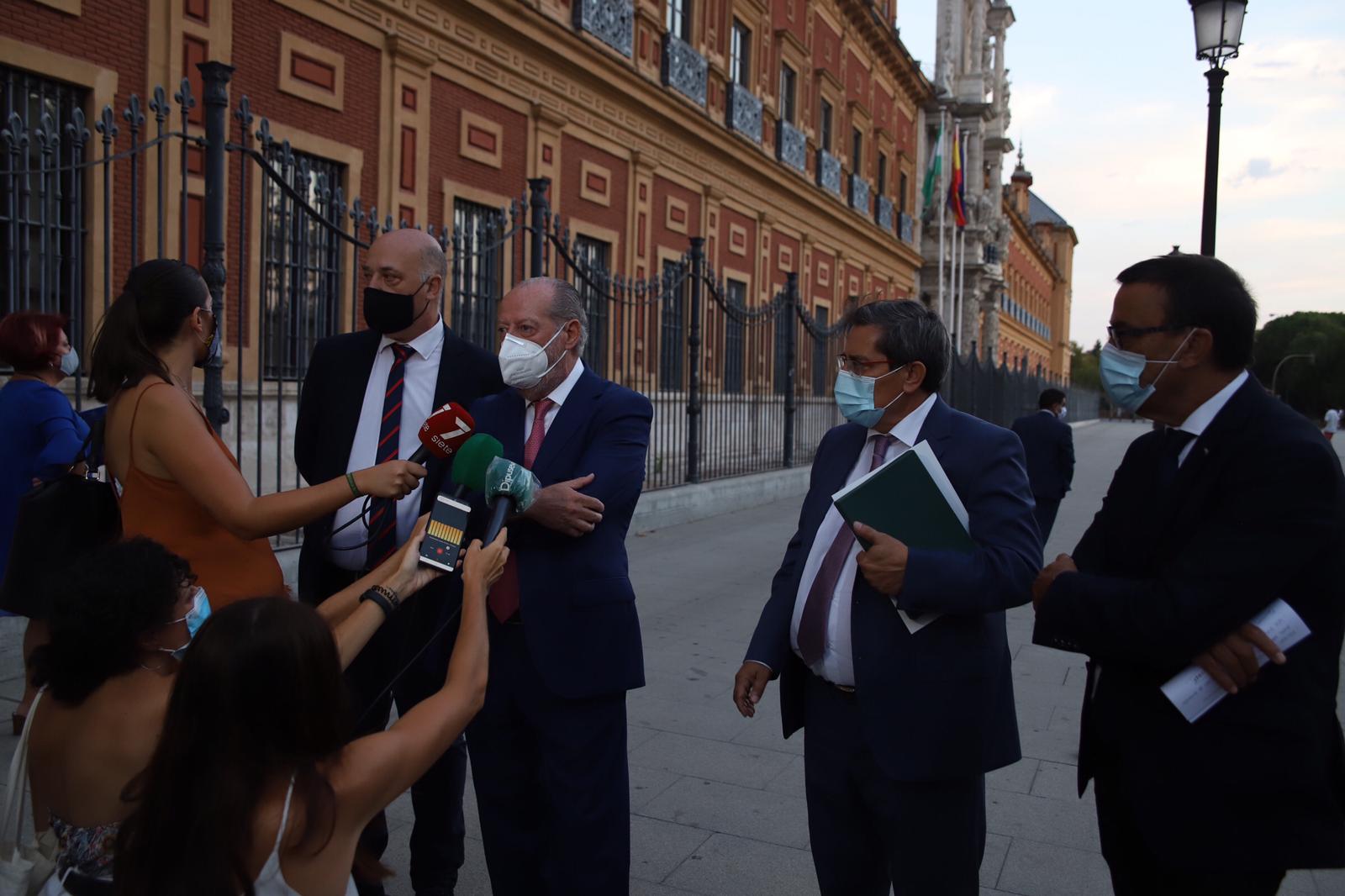 Al encuentro asistieron los representantes de las ocho instituciones provinciales andaluzas, todas ellas gobernadas por socialistas salvo las de Málaga y Almería, presididas por el PP, y si hubiera que resumir el sentir de los convocados, nada más simbólico que el gesto del presidente autonómico de no dejarles comparecer ante los medios para valorar cómo había ido la reunión en el interior de San Telmo. Finalmente, tuvieron que hacerlo en la calle. "En primer lugar, pedirles disculpas por atenderles aquí, en las puertas del Palacio de San Telmo, ha sido imposible que esta comparecencia hayamos podido hacerla dentro", se disculpaba Francisco Reyes, el presidente de la Diputación de Jaén, ante la prensa, quien también lamentaba que el encuentro se haya celebrado "casi seis meses después del inicio de la pandemia".