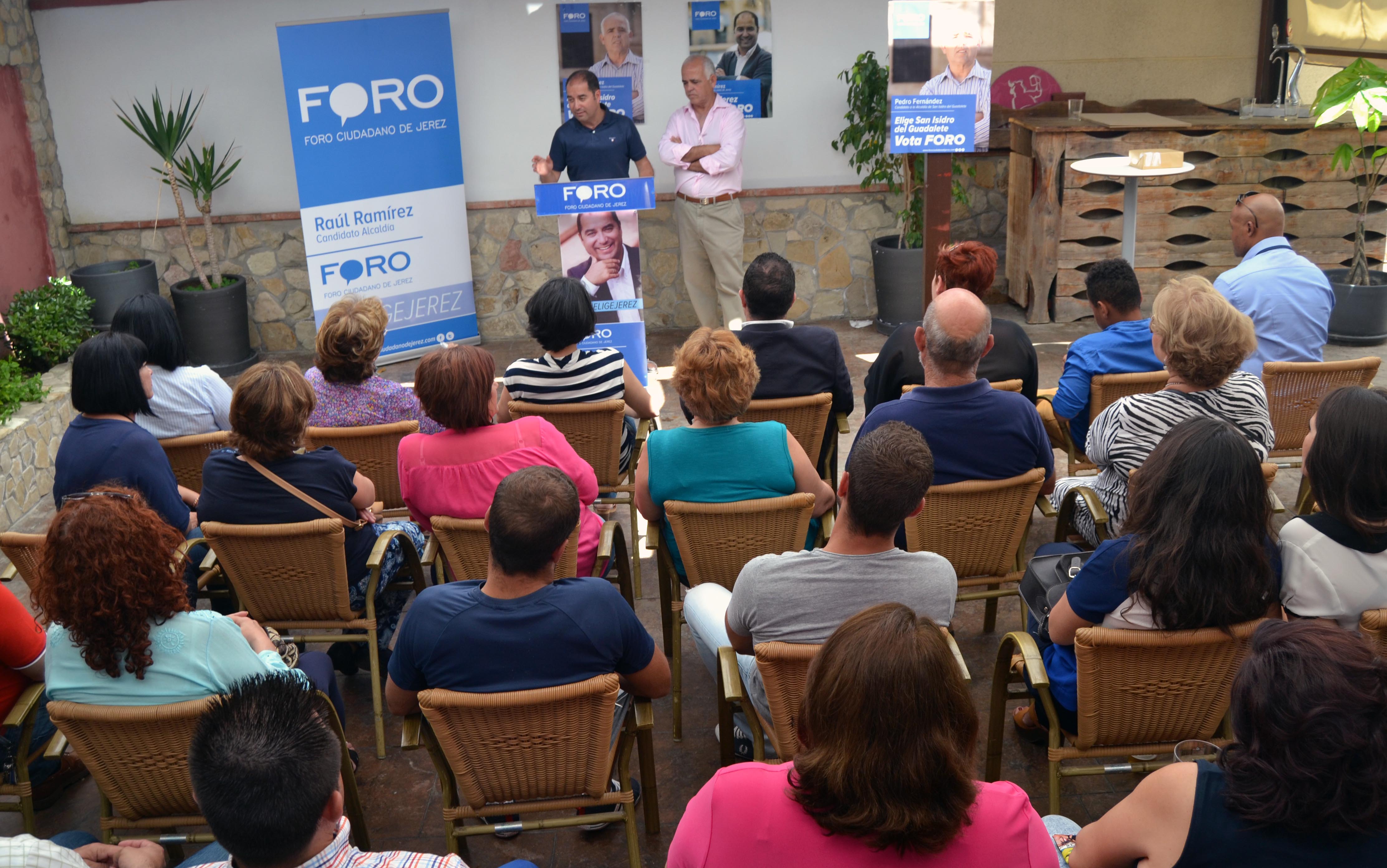 Pedro Fernández ha añadido que “cuando me llamó Foro me convencieron sus ganas de trabajar diariamente por los jerezanos y jerezanas, su presencia constante en las barriadas y en los pueblos, me acompañan en esas mismas ganas que tengo yo de trabajar por mi pueblo. Soy honrado y trabajador y con eso basta para buscar el bienestar de mi gente”, ha asegurado ante una nutrida presencia de vecinos y amigos, añadiendo que “yo solo desde luego no voy a hacer nada, hay que contar con todo el mundo, sin promesas que no se puedan cumplir”. Entre los puntos y objetivos principales del “proyecto planificado” que tiene Foro para San Isidro del Guadalete está la necesidad de potenciar los recursos propios de la ELA para generar empleo, con bolsa de trabajo propia; el apoyo y asesoramiento al comercio local y a nuevos emprendedores; la puesta en valor de las zonas verdes y adecentamiento de jardines y arboleda; la mejora del mantenimiento urbano: mejoras de acerado, mobiliario, limpieza, asfaltado y aparcamientos e instalaciones; promoción de construcción de viviendas públicas en régimen de alquiler y autoconstrucción.