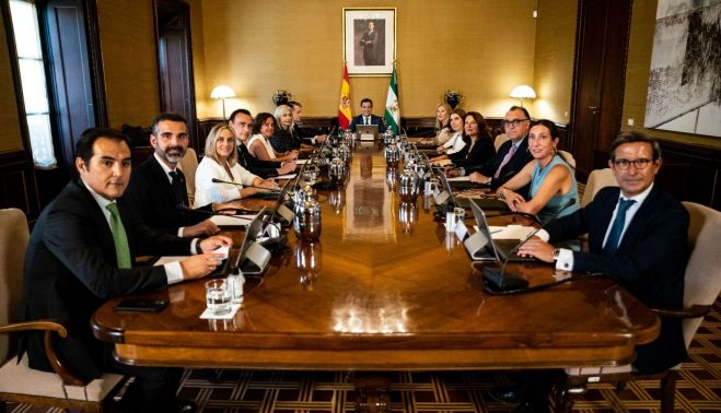 Los 13 integrantes del nuevo Gobierno andaluz presidido por Juanma Moreno, el primero conformado tras la mayoría absoluta alcanzada por el PP-A en las elecciones del 19 de junio, han tomado posesión de sus cargos en la mañana de este martes en un acto institucional celebrado en el Salón de los Espejos del Palacio de San Telmo.