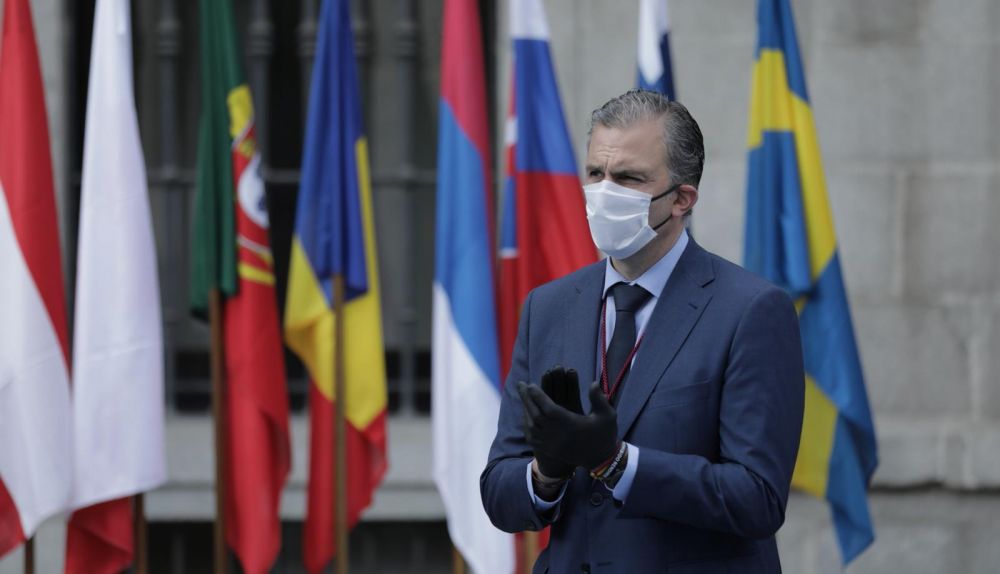 Tras esa pancarta contra la violencia de género, encabezada por el alcalde, José Luis Martínez-Almeida (PP), y la vicealcaldesa, Begoña Villacís (Cs), se encontraban representantes de Más Madrid y PSOE.