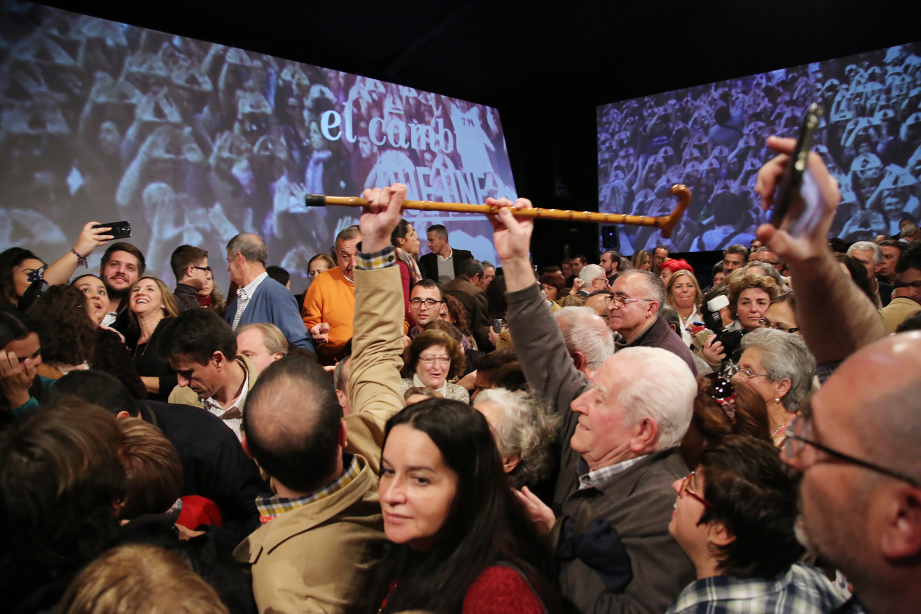 En el interior, con más de media hora de retraso sobre lo inicialmente previsto, ‘El cambio que une’ figura por todas partes mientras suena una descafeinada sintonía del PSOE que se mueve entre el hilo musical de un aeropuerto y la musiquilla de una llamada en espera en Vodafone. Los mítines ya son lo que eran. No hay banderas ni ese crescendo atronador cuando llegaba el candidato entre la multitud. Debe de estar media provincia paralizada: alcaldes/as y cargos políticos de muchos ayuntamientos han acudido en tropel a la llamada de su candidato. No se mueve ni un papel en los despachos oficiales. De nuevo lo institucional y lo orgánico incomprensiblemente mezclados en día laborable. Pero es campaña. Todo vale. Nadie sabe ya ni donde vive. Lo mismo la alcaldesa, Mamen Sánchez, habla del 20-N para referirse al 20-D que Miriam Alconchel, número 2 al congreso por Cádiz, habla de “este jueves” cuando quiere decir “este miércoles”. Las dos se ceban con el PP, como no podía ser de otra manera. La diputada saliente le demanda a su líder que derogue la reforma de la administración local de Rajoy, “ni es racional, ni es sostenible”, y Alconchel, en una clave mucho más política, de partido, le recuerda que “estás en una ciudad y una provincia que ha sufrido muchísimo en estos últimos cuatro años por culpa del PP”. Por ello, haciendo gala de su condición de secretaria general del PSOE jerezano, le insiste: “Pero es una tierra sabia, ya hemos ganado las últimas europeas, las autonómicas, las municipales, y tú serás nuestro próximo presidente del Gobierno”.