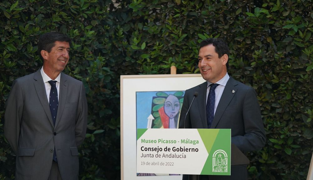 Gestos de complicidad los que ha habido entre el presidente de la Junta, Juan Manuel Moreno, y el vicepresidente, Juan Marín, en la rueda de prensa posterior al Consejo de Gobierno que se ha celebrado en el Museo Picasso de Málaga. Y son novedad porque los rumores sobre el adelanto electoral habían provocado tensión entre los socios del Gobierno andaluz hasta el punto de que el propio Marín había reconocido que llevaban cinco días sin intercambiar palabras.