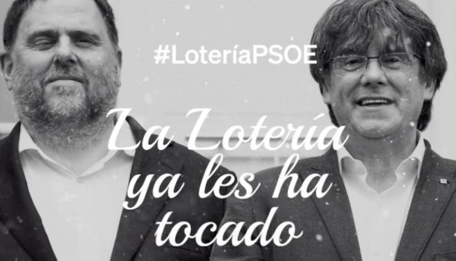 Con el hashtag #LoteríaPSOE y las imágenes de Junqueras y Puigdemont, el PP concluye: "La Lotería ya les ha tocado".