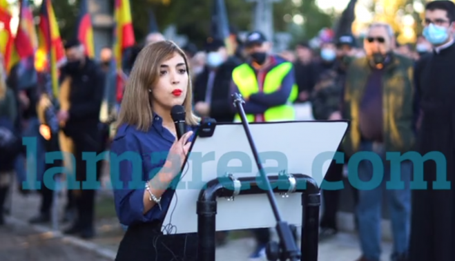La joven que realizó proclamas antisemitas en el homenaje a la División Azul, Isabel Peralta, se enfrentará a una acusación de delito de odio tras el informe elaborado por la Policía Nacional que investiga el acto celebrado en febrero. "El judío es el culpable y la División Azul luchó por ello", dijo Peralta. El Periódico ha accedido a la investigación, que revela cómo la Policía relaciona estos hechos con el artículo 510 del Código Penal, que implicaría penas de hasta cuatro años de prisión como máximo.