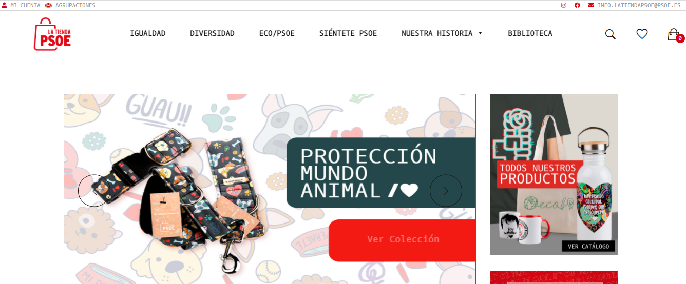 Esta página web está vinculada al Partido Socialista tal y como refleja el apartado de política de privacidad: El responsable del tratamiento de tus datos es el PARTIDO SOCIALISTA OBRERO ESPAÑOL (en adelante, PSOE), que regula La Tienda PSOE, con dirección postal en calle Ferraz, 70, 28008, Madrid. En ella, además de los productos citados a la venta, puede encontrarse, además, información sobre el partido y mensajes sobre igualdad y diversidad.