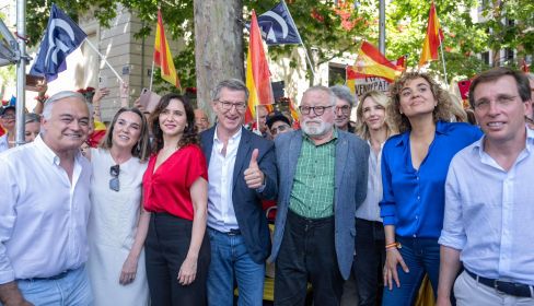 Los más optimistas cifran en unas 80.000 personas las que se arremolinaron en torno al icono de Madrid para, junto a los ex presidentes del Gobierno, José María Aznar y Mariano Rajoy, militantes, barones, cargos electos, orgánicos e intelectuales como Fernando Savater, decir no al proyecto de ley. El líder del PP, Alberto Núñez Feijóo, venido arriba, llegó a exigir convocatoria de elecciones generales anticipadas el próximo mes de julio, igual que hace un año.