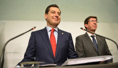 El presidente de la Junta, Juanma Moreno, y el vicepresidente y consejero de Turismo, Regeneración, Justicia y Administración Local, Juan Marín, han presumido este martes de la "buena sintonía" que está marcando las relaciones y, por tanto, la gestión que están compartido el PP-A y Ciudadanos (Cs) en el Gobierno andaluz, toda vez que, como han explicado, incluso antes de que cumplan cien días al frente de la Junta, han puesto en marcha las 21 medidas comprometidas para este periodo: "En Andalucía cumplimos".