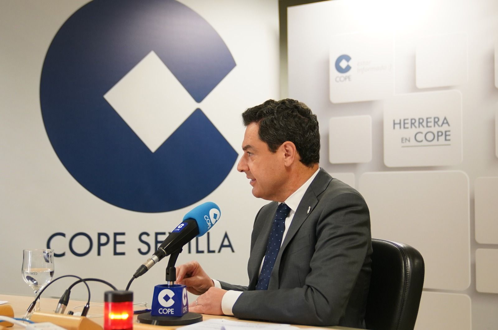 La campaña electoral comienza el 3 de junio, pero se va a hacer más larga. Mucho más larga. Los candidatos ya han comenzado su particular tour por los medios de comunicación. Entre ellos, el que ya es presidente en funciones de la Junta de Andalucía, Juan Manuel Moreno. Se ha estrenado con una entrevista en la Cope, en el programa de Carlos Herrera, con el que hace unas semanas compartió balcón para ver la Semana Santa de Sevilla.