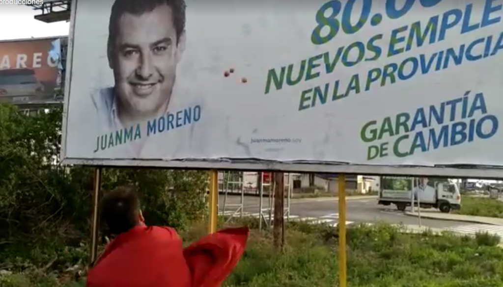 El candidato de AxSí, Joaquín Bellido arrojando huevos a una valla del PP andaluz.La formación ha salido en los medios durante estos últimos días porque su líder, Joaquín Bellido, ha tirado huevos a las vallas de los candidatos de Ciudadanos, PP y PSOE. Sin embargo, no a Adelante Andalucía. "Teníamos un cartón de 12 huevos y cada uno se ha llevado 3... ahí lo dejo", declara a lavozdelsur.es.