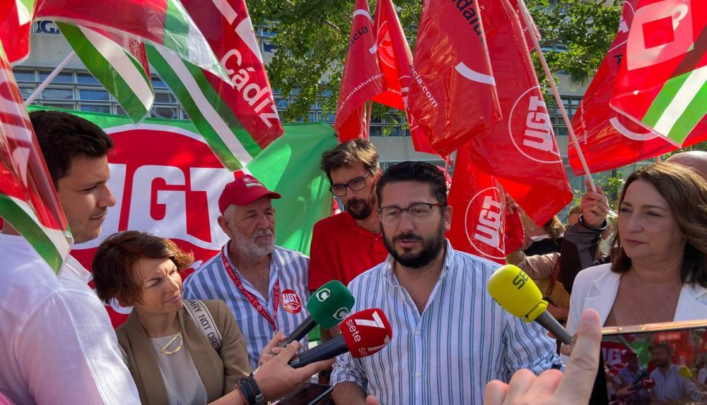 El coordinador provincial de IU Cádiz, Jorge Rodríguez y el diputado de IU en el grupo Unidas Podemos del Congreso, José Luis Bueno, junto a otros miembros de la dirección provincial de IU, ha agradecido a las centrales sindicales la convocatoria, “porque no es la primera vez que ocurre que desde la patronal se pretende que las consecuencias de la crisis la paguen las trabajadoras y trabajadores”, apuntaba Rodríguez. “Se trata de una nueva crisis, una nueva debacle ante la inflación, que está produciendo un empobrecimiento de los trabajadores” y frente a ello “hay que decirle basta a las empresas y, sobre todo, a las multinacionales, que nos están bombardeando con informaciones de grandes beneficios, pero quieren que esta crisis la paguen los trabajadores, no quieren que la riqueza y el reparto de la economía se haga con los trabajadores, sino que paguen los problemas que estamos sufriendo en este país”.