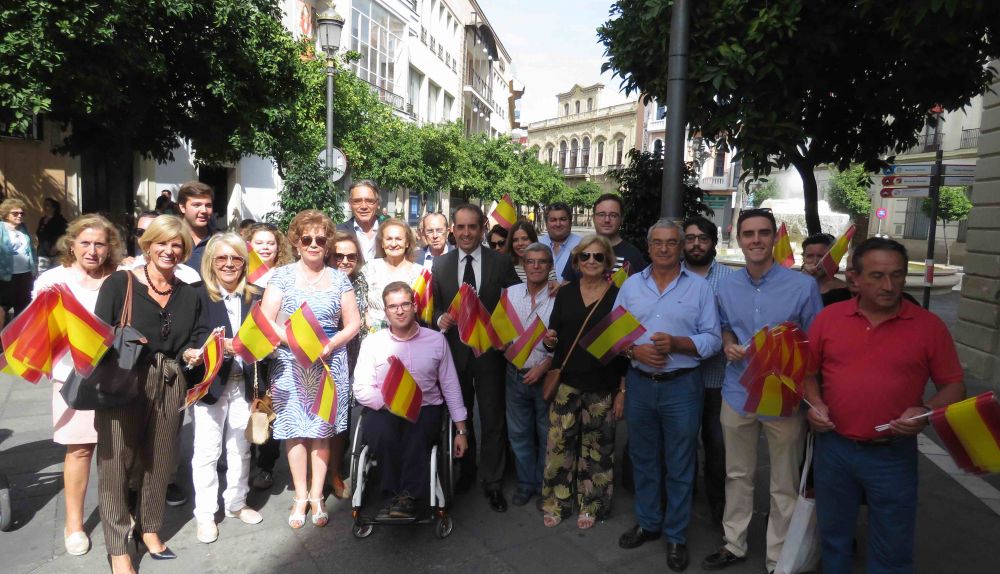 El PP de Jerez ha abanderado los actos celebrados en Jerez con motivo del Día de la Fiesta Nacional de España. Tras participar en los actos que la Guardia Civil ha celebrado con motivo de su Patrona, la Virgen del Pilar, los populares han trasladado al centro de Jerez la celebración del 12 de octubre con un reparto de banderas de España.
