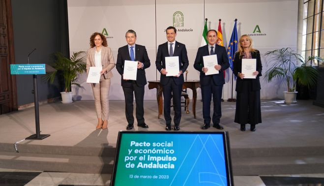 El pacto social que firmaron este lunes Junta, sindicatos y patronal de empresarios ha trastocado el tablero político andaluz. Cuando el Gobierno de Moreno estaba sufriendo críticas de mayor intensidad por la gestión de la sanidad, este acuerdo que movilizará 9.000 millones de euros ha sido un auténtico balón de oxígeno.