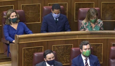 La postura del PP en esta moción de censura coloca a los populares "más cerca del Gobierno" de PSOE y Unidas Podemos "y más lejos de España", a juicio de la parlamentaria Patricia Rueda, que cree que les preocupa "más el interés personal y no el general". La secretaria general de Vox en el Congreso, Macarena Olona, ha preferido dar las gracias a su presidente, Santiago Abascal, por haber "demostrado" que no son iguales al PP pese a los "insultos despiadados y ataques personales" recibidos.
