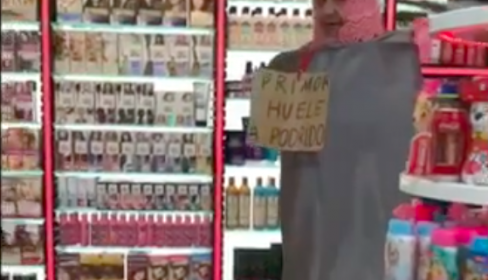 "Primor explota a las trabajadoras", vocifera un hombre disfrazado de bote gigante con un cartel que dice: "Primor huele a podrido". Se trata de un acto de protesta en el interior de la perfumería Primor del centro comercial Bahía Sur (San Fernando, Cádiz) contra los abusos que sufren sus trabajadores y contra los despedidos de más de 30 empleados del almacén central de Primor situado en el polígono de Trevénez en Málaga.