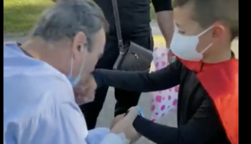 Tras haber perdido más de 30 kilos y haber tenido que volver a aprender a andar y respirar, la fisio del Hospital Reina Sofía de Córdoba, donde ha estado estos meses ingresado, lo sorprendió con lo que más anhelaba: volver a ver a Adrián, de 6 años, su único nieto.