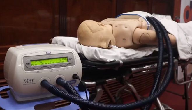 Los pacientes cuyos familiares autoricen este tratamiento experimental recibirán cuando estén en posición pronada tres sesiones de 15 minutos de fisioterapia respiratoria de una forma mecánica autónoma con sus descansos de una hora entre sesiones de fisioterapia, con la colocación en la parte posterior e inferior del tórax a una frecuencia baja, sin peso añadido y sin calor local, de estos aparatos con el fin de favorecer la movilización y salida de las secreciones en aquella zona del pulmón donde se acumulan con mayor frecuencia (alveolos, bronquiolos...) y, por tanto, que puedan mejorar su oxigenación y el parámetro ventilatorio PaFi .