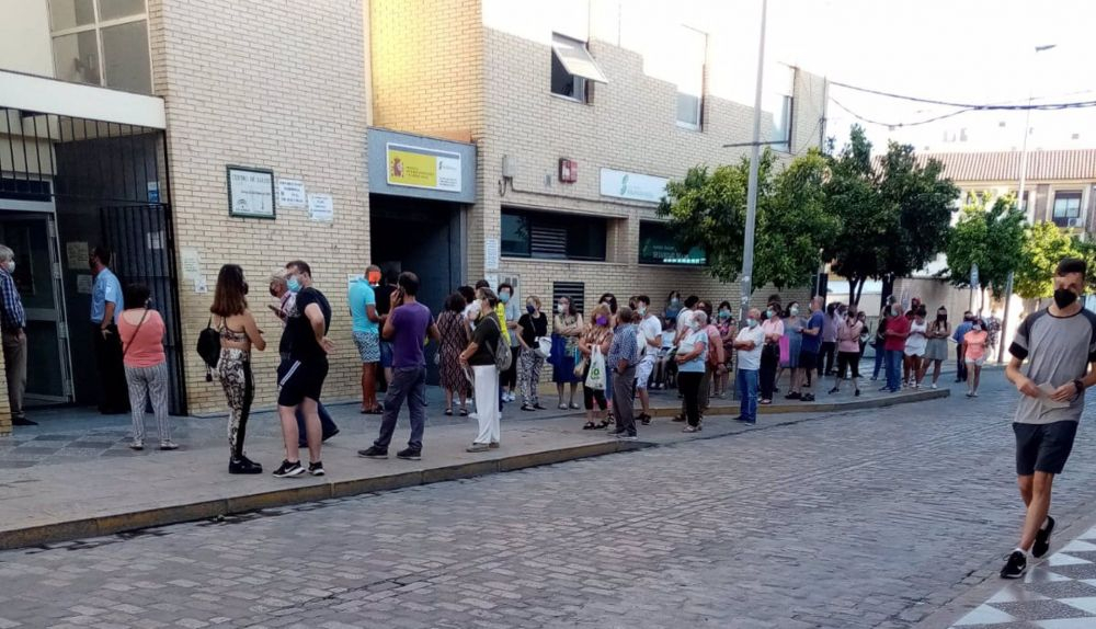 Vecinos de Lebrija denuncian la situación de "colapso sanitario" que vive el municipio, donde guardan cola de "hasta dos y tres horas" en su centro de salud, única vía para pedir cita con el médico.