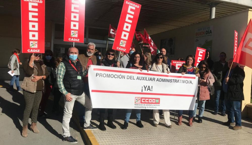 El sindicato de sanidad y sectores sociosanitarios de Comisiones Obreras ha comenzado una campaña de movilizaciones en la provincia de Cádiz para exigir la promoción de los profesionales con la categoría de auxiliares administrativos a la categoría de administrativo.