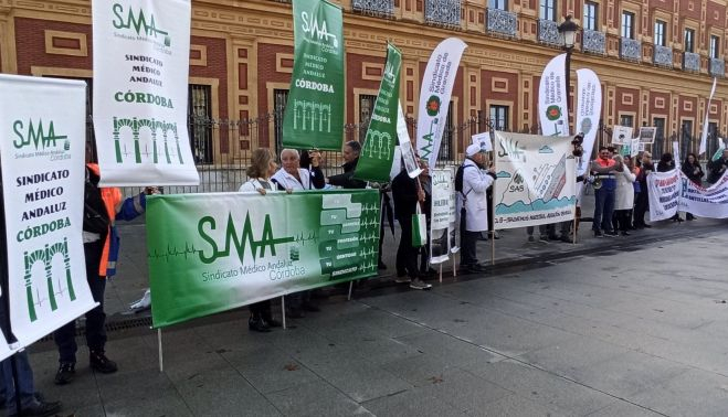 El personal sanitario sigue sin estar satisfecho por las políticas de la Junta de Andalucía. El Sindicato Médico ha reunido este viernes a cientos de profesionales para protestar por el deterioro de la sanidad pública. La movilización ha dejado patente una evidente conclusión; "la sanidad es un problema al que no se le buscan soluciones definitivas", han aseverado los más de 150 facultativos presentes. Lógicamente, estas declaraciones hacen referencia a la renovación de 12.000 sanitarios por un tiempo de entre seis meses y un año, algo que, según los sindicatos, no soluciona nada.