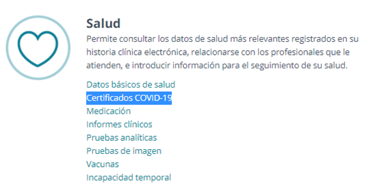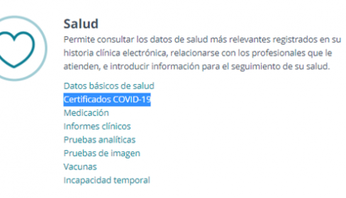 A través de la web de la Consejería se puede acceder a la web ClicSalud+, en este enlace. Entre otras cuestiones, permite conocer resultados de pruebas e informes, pero una de las pestañas que se abren es la de Certificados Covid-19. Tras entrar a través de certificado digital, Cl@ve o datos personales con verificación móvil, hay que seleccionar el de vacunación, pruebas o recuperación, según sea el caso si se quiere entrar con un test negativo, la pauta completa o el reconocimiento de tener anticuerpos por haber pasado la enfermedad
