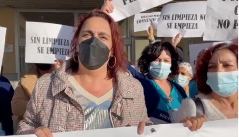 La parlamentaria de Adelante Andalucía por Cádiz, Ángela Aguilera, ha anunciado que va a llevar al Parlamento de Andalucía la situación de los trabajadores y trabajadoras del sector de la limpieza del Hospital Punta de Europa de Algeciras. Aguilera ha acompañado esta mañana al colectivo a una concentración de protesta y ha recordado que lo que están reclamando son mejoras salariales, condiciones dignas de trabajo y, en definitiva, el cumplimiento del convenio.