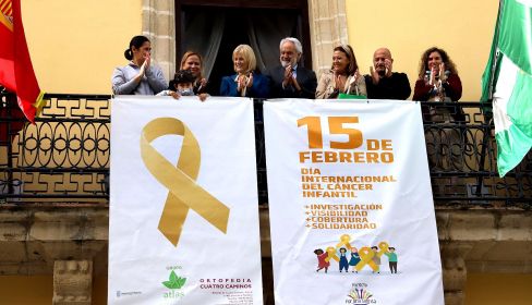 La alcaldesa de Jerez, María José García-Pelayo, ha expresado el respaldo de la ciudad al Día Internacional del Cáncer Infantil, en coincidencia con la colocación en la fachada del Consistorio del Lazo Dorado.
