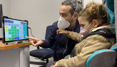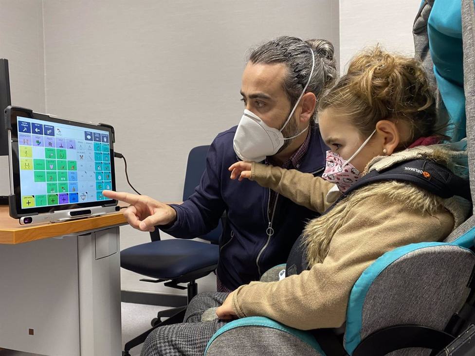 Emma es una niña de 7 años con una enfermedad rara que ha empezado a comunicarse con su familia a partir del movimiento de sus ojos y una tableta, gracias a un proyecto puesto en marcha por el Hospital Regional de Málaga para pacientes con trastornos neuromotores graves.